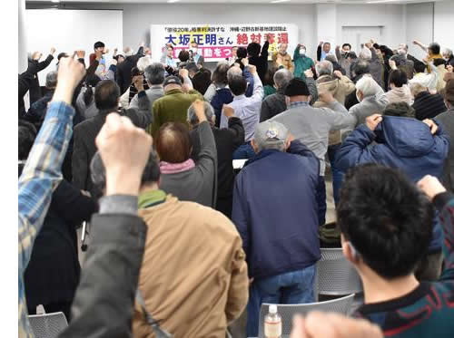 (写真 大坂さん奪還を誓い団結ガンバロー【17日】)