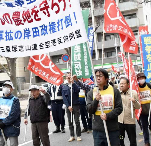 日ウクライナ経済復興推進会議粉砕闘争と同日ながら、前回より参加人数は増えました。次回3・18は、いよいよ市東孝雄さんが証言に立ちます。結審策動との攻防でもあります。法理証人を引きずり出したことが示す通り、裁判は力勝負です。大結集の千葉地裁デモと傍聴闘争の力で、軍事空港建設のための農地強奪攻撃を粉砕していきましょう!