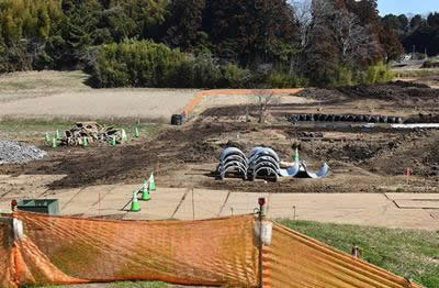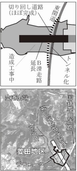 そして今回の機能強化で、東関道を地下トンネル化(430㍍)してその上にBの延長滑走路を築こうとしている。その東関道地下化に向けた切り回し道路(仮設道路)を造る工事が今年春頃の供用を目指して急ピッチで進められてきた。滑走路北延伸の造成工事も開始されている。