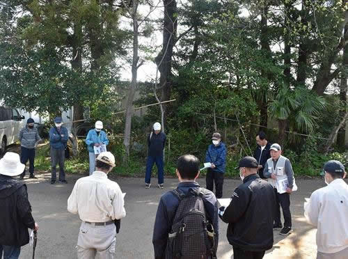 午前8時半、成田市天神峰の市東孝雄さん宅前の団結街道に結集した仲間は、朝の打ち合わせを行った。