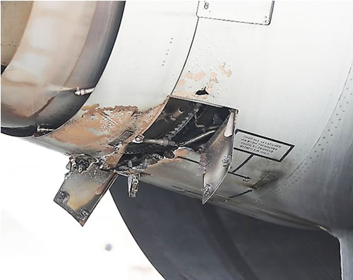 6月4日、米貨物機ポーラーエアカーゴ752便が成田空港を離陸した直後に右翼のエンジンから出火。2分後に緊急事態を宣言。千葉県銚子沖で旋回して上空から燃料を捨てた後、消防車20台が待機する成田A滑走路に緊急着陸した。その後の点検でエンジンケースの穴、内部の羽根の損傷が確認された。(写真)