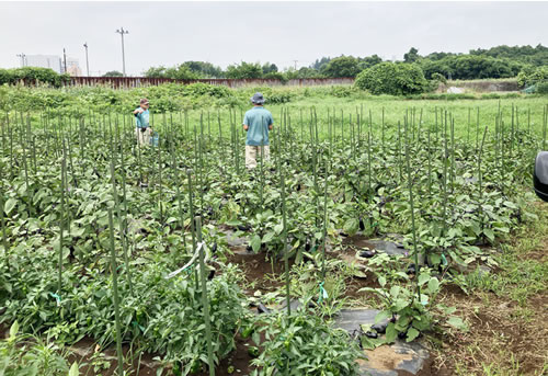 (写真 市東さんの南台農地でナス収穫【7月16日】)