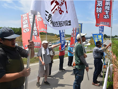 参加者は県道115号線を北上し、延伸予定地東側から工事現場に向けて再び弾劾のシュプレヒコールを浴びせた上、出発点まで戻って炎暑のもとでの行動を終えた。