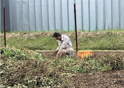 そして、萩原さんの畑では生落花生として出している「おおまさり」の収穫が終盤を迎えています。この時期は落花生の収穫からさつまいもの収穫に切り替わる時期でなかなか大変ですが今年はさつまいもの出来がいいです。萩原さんの生姜で体調を壊さず、三里塚野菜で寒い冬を乗り切りましょう。