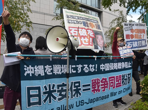 改憲・戦争阻止!大行進東京が主催する特別国会開会日闘争が11月11日、全学連を先頭に80人の結集で闘われた。三里塚現地から現闘が駆けつけ、参加者と共に「中国侵略戦争に突進する石破打倒! 戦争国会粉砕!」と意気高く声を上げた。