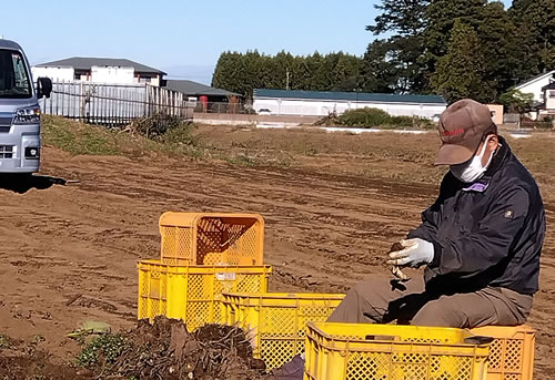 里芋は当面の分を順次掘りながら出荷しています。次の時には残り全部を掘り取って、芋穴で貯蔵する予定です。