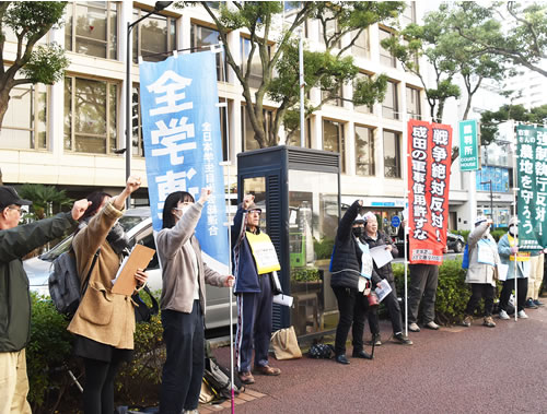 反対同盟と支援連は、千葉地裁が農地取り上げの反動判決を下すことを絶対に許さないという意気込みで、この日の行動に立ち上がった。