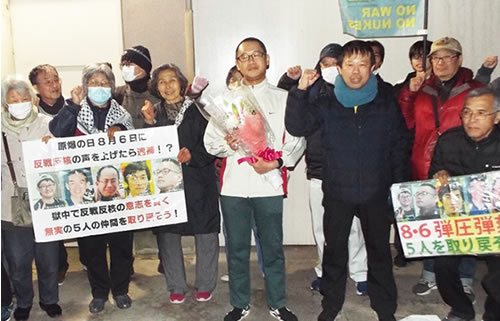 広島地検は1人あたり500万円という法外な保釈金を要求し、中国侵略戦争に突き進むためにあくまで反戦・反核運動をつぶすと敵意をむき出しにしている。弾圧粉砕・完全無罪へ闘おう。