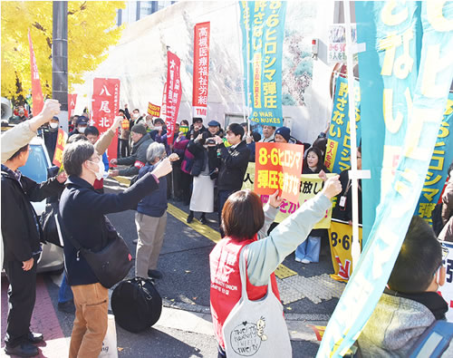 長崎原爆被爆者の土井玞美子さんは、「(8・6に)反戦・反核の声をあげることを『罪』とするこの事態は、もう戦争が始まっていることの証左」「(本弾圧は)再び侵略戦争へ動員しようとするための見せしめです。その先にあるのは本当の戦争です。絶対に負けられません」「戦争を止めるために、私もがんばります。皆さん、ともに闘いましょう」とメッセージを寄せた。