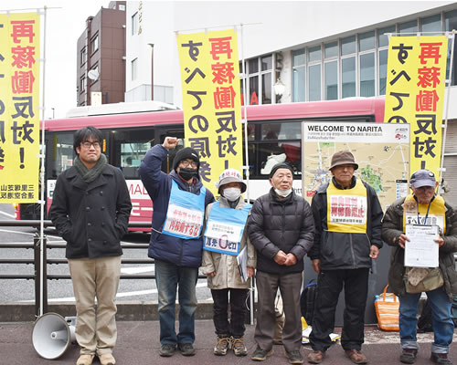 反対同盟と支援連絡会議は12月25日、「東海第二原発いらない!首都圏ネットワーク」の呼びかけに応え、京成成田駅前で東海第二原発再稼働阻止を訴える一斉行動に立った。