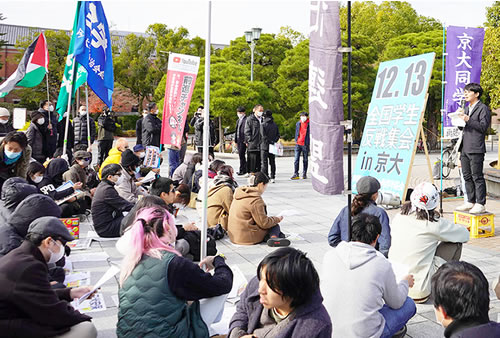 (写真 昨年12月、京都大学キャンパス内で開催された全国学生反戦集会)