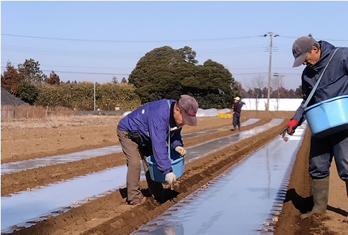 そんな畑の状況も、これからどんどん様変わりしていきます。市東さん宅では、春まきの大根、人参、じゃが芋、そしてネギ(苗)の作付けを続々と行いました。