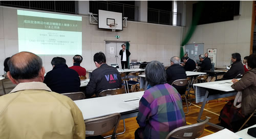 成田市内で3月15日に開かれた「航空機騒音から健康を守る講演会」に参加しました。主催は成田市、芝山町、横芝光町、茨城県稲敷市の4市町の住民団体からなる成田空港の航空機騒音から生活を守る周辺住民の会。講師は、騒音による健康影響が専門の田鎖順太北海道大学大学院工学研究院地域環境研究室助教です。