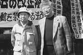 途中「森首相が退陣するまで座り込みを続ける」との趣旨で近くで座り込み闘争を行っていた作家の宮崎学さんのグループが反対同盟への激励に訪れ、北原さんらと固い握手。