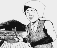 家の周りの仕事を見つけて体を動かし、昼休みには庭先でめがねもなしに新聞を読む萩原哲子さん。自家用の野菜畑で鍬をふるい、自転車で部落の中を行き来する川嶌みつ江さん。二人は八十を越えてなおかくしゃくとした、神社の歴史の生き証人です。(北里一枝)