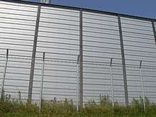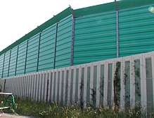 (写真左上 北側の十余三地区には写真のような10メートルもある対策フェンスが設置されている)