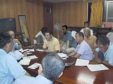 (写真右 反対同盟は成田市空対部を追及し、公団に対策塀を設置させるよう迫った)