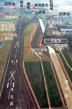 当初計画(従来の二五〇〇b滑走路へ南側に延長)への復帰は、空港反対農家の宅地、畑、開拓組合道路、共有地、神社、墓地、などが存在してもはや百l不可能である。