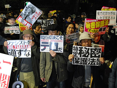 (写真 特定秘密保護法の成立強行に怒り、国会前に押しかけた労農学市民【12月6日】)
