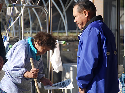 萩原進さんは知人を訪ね関係を深めた。萩原富夫さんは、下総地区を回って旧知の住民に「来年早々、控訴審に向けた新たな署名運動を行いますのでその節はよろしく」と声かけ。伊藤信晴さんは芝山町北部。木内敦子さんと宮本麻子さんもそれぞれ旧大栄町、多古町を訪ねて回った。