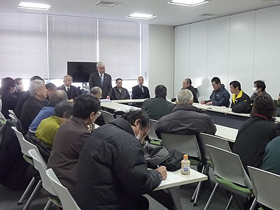 1月26日、反対同盟による新年第1回目の周辺地域一斉行動が行われた。午前9時に約30人が市東孝雄さん宅に集まって意志一致を行った。