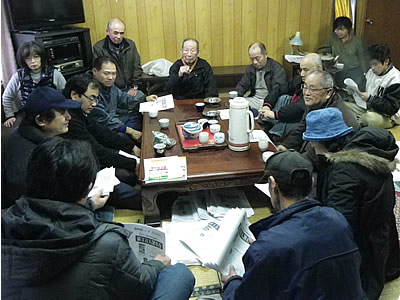 1月26日、反対同盟による新年第1回目の周辺地域一斉行動が行われた。午前9時に約30人が市東孝雄さん宅に集まって意志一致を行った。