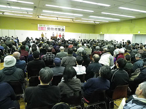 「国鉄分割・民営化で不当解雇から27年―2・16労働者集会」は、東京・北海道・九州の全国3カ所で開催された。東京集会には、すみだ産業会館の会場からあふれる665人が結集し、1047名解雇撤回・JR復帰の最高裁闘争の決戦陣形を構築した。