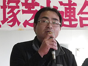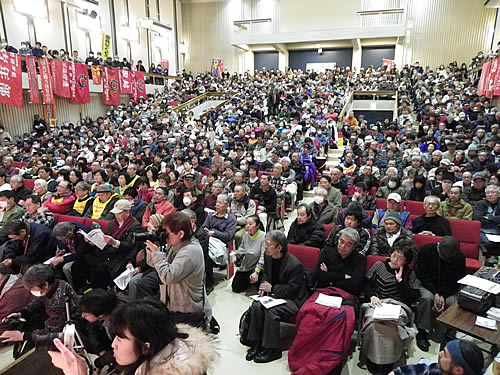 また集会では、都知事選を闘った鈴木達夫弁護士が連帯のあいさつに立ち、満場からの喝采を浴びた。鈴木さんは「労働者が本当に勝っていくために訴え、1千万都民と結合した。闘う労働運動を再建しようということは、労働者の胸に確実に届いた」と意気高く宣言した。特別報告で労働運動研究家の金元重さんが韓国鉄道労組ストを、自治体委託業務の民間労働者が自治体民営化の現状を報告、署名呼びかけ人は「解雇撤回・共同闘争」を訴えた。国労新潟・星野文男さんが新津車両製作所の分社化阻止闘争を報告した後、動労千葉争議団の高石正博さんと中村仁さんが登壇し、「解雇撤回まで闘う」と元気に決意表明した。さらに、動労千葉・長田敏之書記長のカンパ・アピールをはさんで「JR外注化粉砕!非正規職撤廃へ」「決意表明」のそれぞれに現場労働者が登壇し、階級的労働運動の復権と職場権力の獲得を呼びかけた。中でも、動労千葉青年部長の北嶋琢磨さんの「原職復帰」の報告と決意は、全参加者に励ましを与えた。青年労働者の若々しい運動が不屈に甦っている。「国鉄解雇撤回」最高裁10万署名を取り組み、市東さん3万人署名を貫徹し、3・11郡山、3・23芝公園―3・26東京高裁に結集しよう。